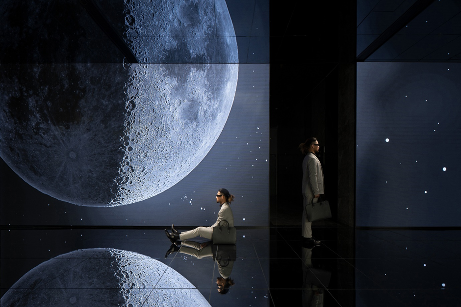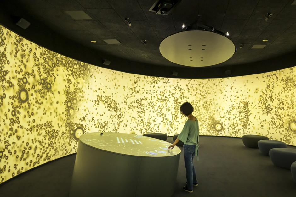 The second example that illustrates an impeccable combination of immersive experiences and interactive elements is the Tiger Wings Cloud Factory Digital Centre by Yajing Li. This exposition shows how technology can blur the boundaries between space and our desire for the unknown. The design team incorporated technology and art design for a better cosmic effect. The project has a space area of 1 700 square meters and attracts visitors with changing vision on the moon display screen.
